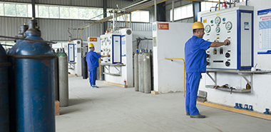 公司選用更專業的生產設備和輔助設備有:充裝排七套、30立方二氧化碳儲槽1臺、100立方二氧化碳儲槽1臺,50立方液氧儲槽1臺,30立方液氬儲槽1臺,30立方液氮儲槽1臺,60立方天然氣儲槽2臺,低溫壓縮泵6臺,高壓二氧化碳充裝線兩條,干冰生產包裝流水線一條,氫氣充裝排兩排(14頭);配有氫氣管束車8輛,LNG運輸車3輛,平板運輸車8輛。